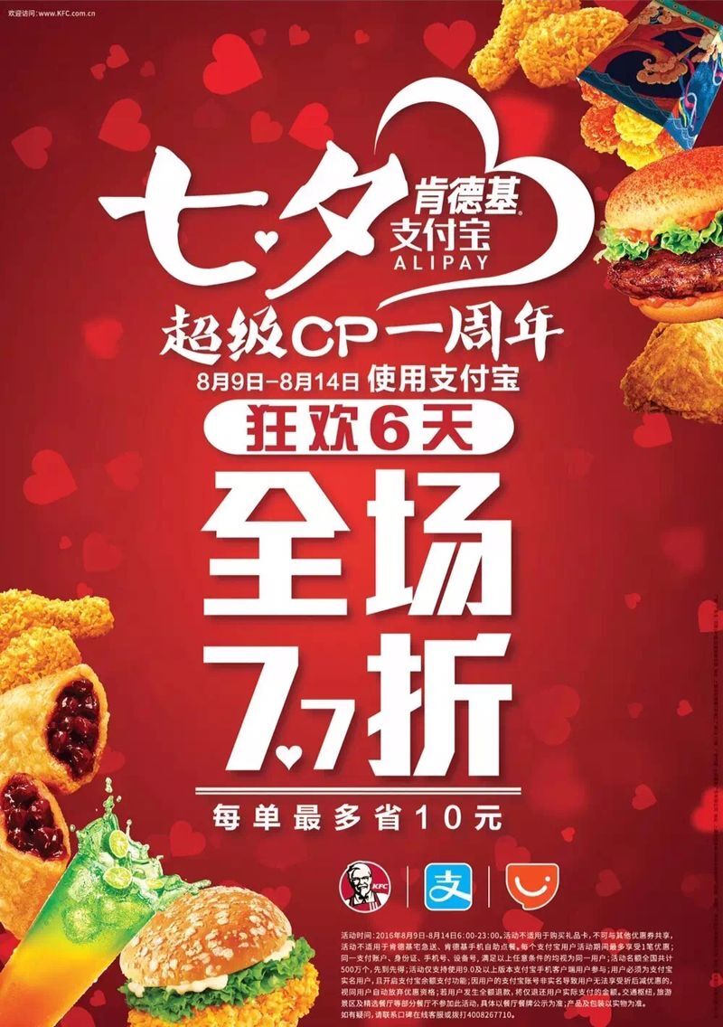 七夕全场7.7折 | 肯德基X支付宝超级CP高调秀恩爱